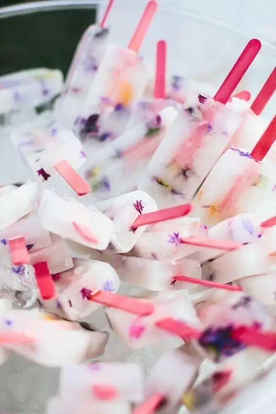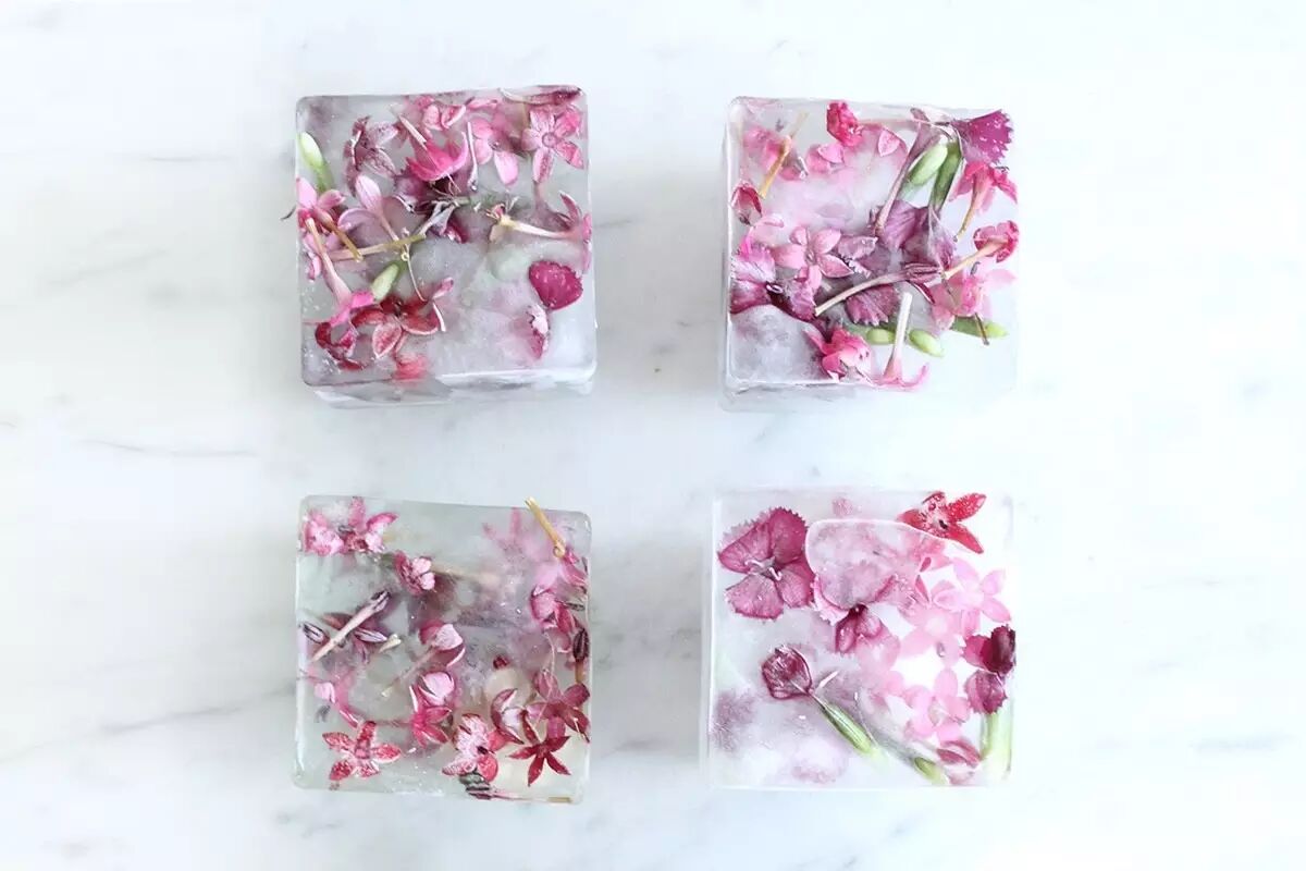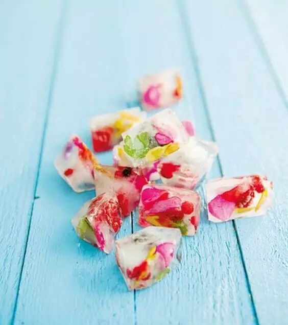 配上各色各样可食用的小花放入冰格,