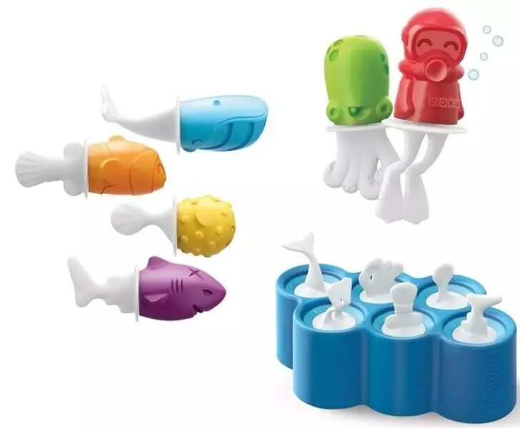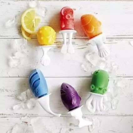 产品包括:6个不同造型的海洋模具、6根不同设计的冰棒棍、1个模具底座
