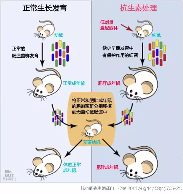 2014年,《细胞》杂志介绍了这个在老鼠身上做的实验:给幼鼠使用抗生素,造成的影响会长期持续,甚至终身。