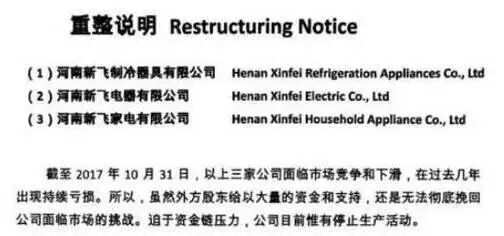 2017年11月,上文那则重整说明预示着,新飞电器的第三次停产危机已来。这一次,还会有人能救得了它吗?
