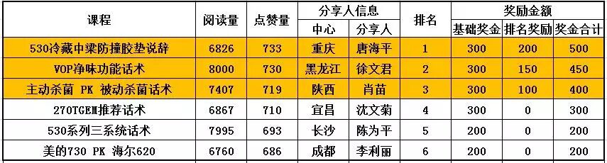 各位小伙伴们,上周“美的主推多门系列话术2”分享评比(元月3期)已经结束,累计有43855位小伙伴们参与评选,感谢大家的积极参与,根据评选奖励依据,具体评选结果及奖励如下: