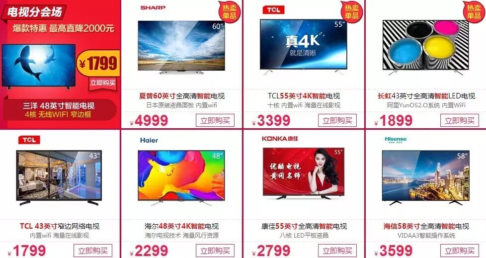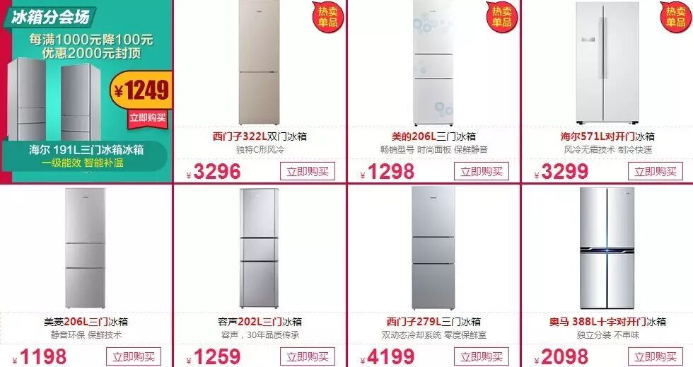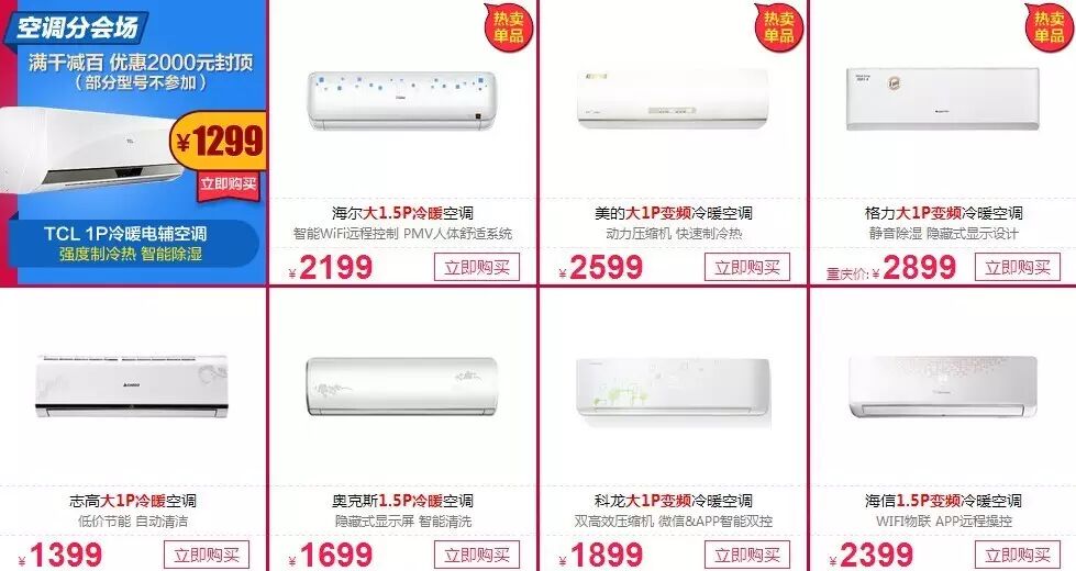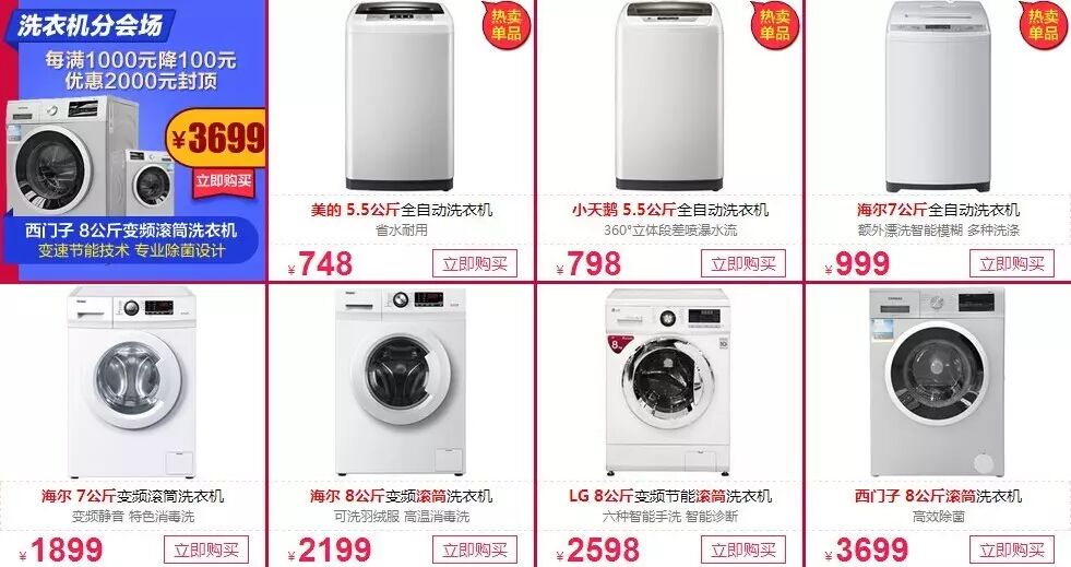 电视/空调/冰箱/洗衣机:满千减百优惠2000元封顶。