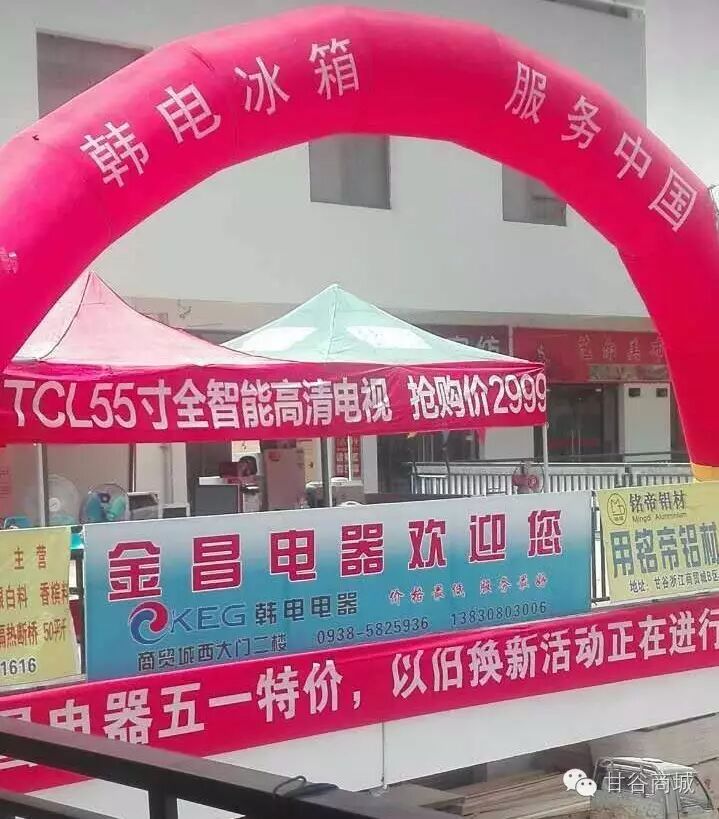 金昌电器位干商贸城西门二楼是一家家用电器,生活电器,厨房家电为一体的大型家电买场。旗下代埋,TCL,海信,三洋,电视,韩电,索伊,美的冰箱先科,杨子,西门子等国內外品牌,质优价廉,以良好的售后服务,最低价格竭诚服务新老客户,服务电话,0938 一5825936@13830803006@15336018009