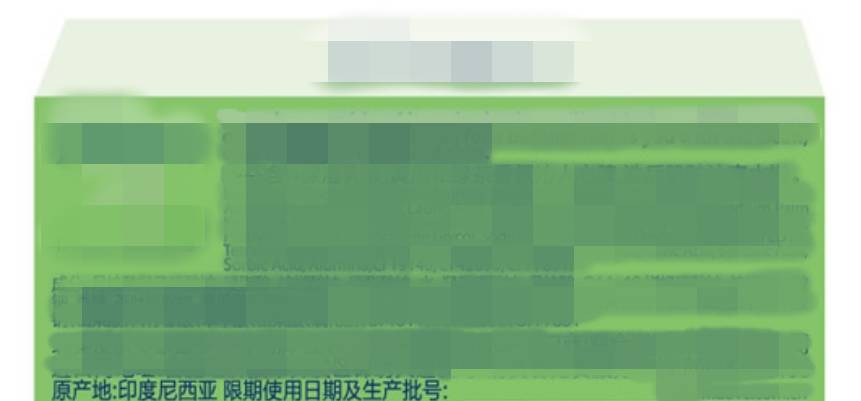 可以看出,商品下半部分的中文字符(大部分中文信息已遮挡),是印刷在额外的标签上面,再粘贴在外包装上的。这二者的区别不用再说了吧?真相已昭然若揭。