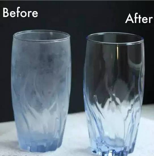 玻璃制品使用久了会有一层厚厚的水渍,用这种有机清洁剂能够让玻璃杯重新变得晶莹剔透,不添加任何化学剂。
