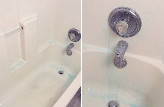 用它清洁浴缸也毫不费力,喷洒在浴缸及水龙头等处,总也擦不掉的水渍污渍,用水冲洗便可轻松去除。让你的浴室焕然一新。