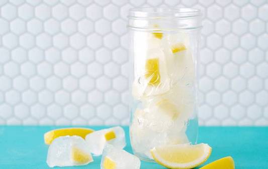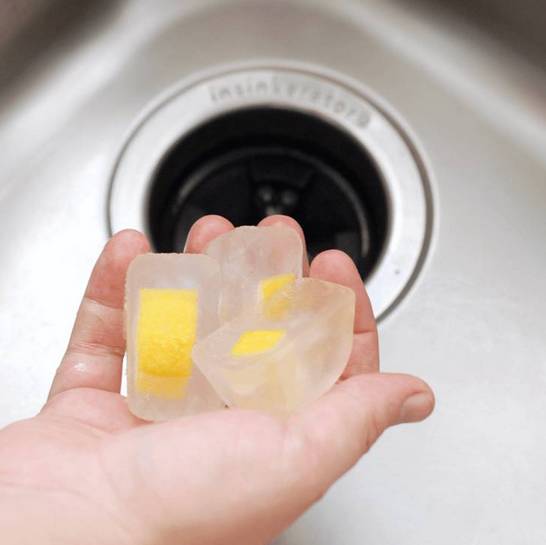 将醋和柠檬混合放入冰格中,冰好后,放在水槽中,让它慢慢融化除异味。