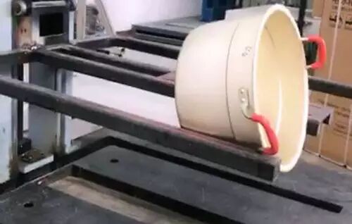 把一只铜锅放在实验机器上,同等高度下,铜锅立马被砸出了个大坑。