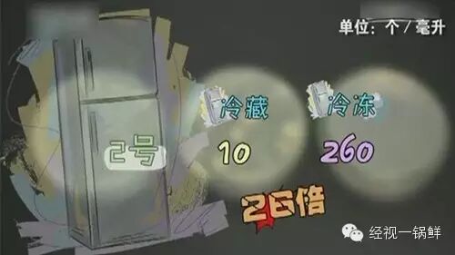 2号冰箱冷藏室的细菌数量为10个每毫升,冷冻室的细菌数为260个每毫升。