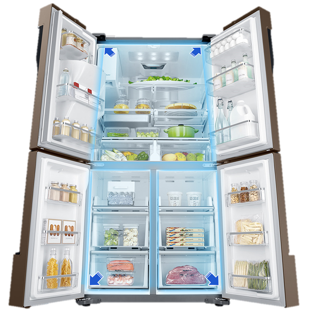 三星全新制冷技术,通过冷藏室内壁上特别金属材质,让食物冷却更佳快速高效。不论是开启时或关闭时,冰箱内部温度都能很快恢复,即使经常开门也不用担心。