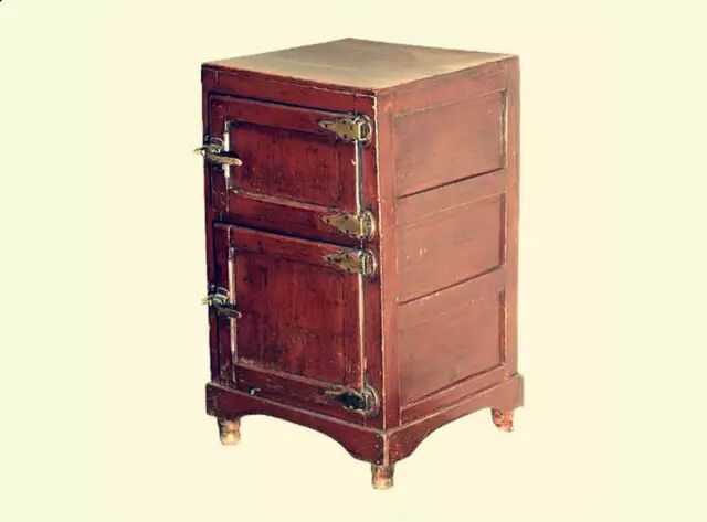 能买得起冰的大户人家,把冰放在“冰箱”里。冰箱是一个木头柜子,里面用铁皮做衬,分上下两格,下面放冰,上面放食物,起到保鲜冷藏作用;把西瓜放在里面冰一下再拿出来吃,就是冰镇西瓜。冰箱其实很便宜,但是冰贵。