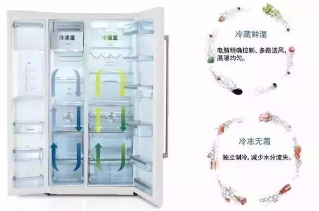 冰箱的各个独立空间,均有各自独立的制冷管路,更准确地控制空间内温度,实现快速制冷和锁住水份的同时,避免窜味。当然因为各独立空间均有制冷系统,所以技术和经济成本较高。