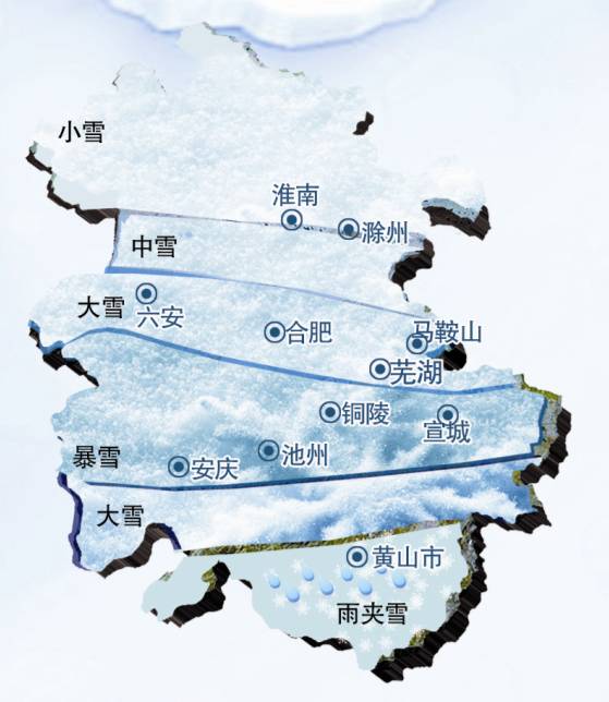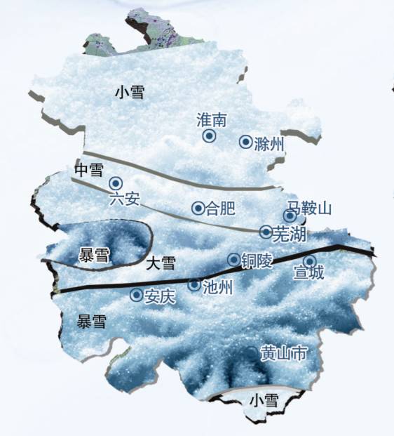 22日:江北有小雪;大别山区和沿江江南有中雪,其中江南南部部分地区有大雪到暴雪。↓↓↓