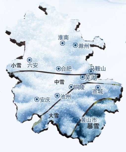 21日:淮北部分地区有小雪;江淮之间北部有小到中雪;江淮之间南部和江南有中雪,部分地区大雪到暴雪。↓↓↓
