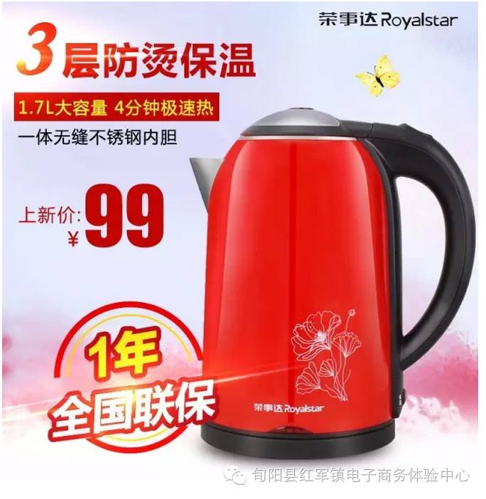 打开农村淘宝搜索:Royalstar/荣事达 GS1758电热水壶不锈钢保温防烫电水壶自动断电 开业价 79元