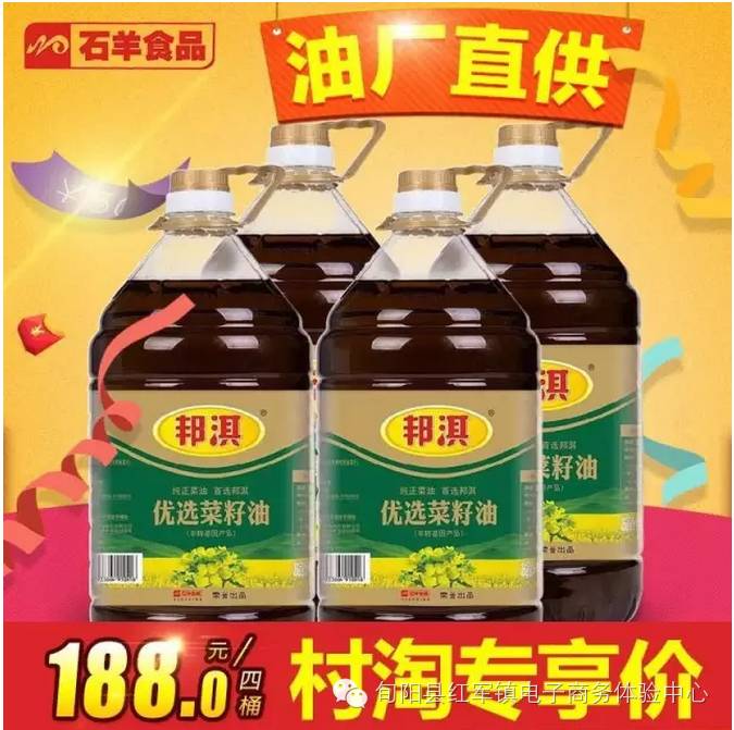 打开农村淘宝搜索:邦淇纯正特香菜籽油 邦淇非转基因食用油粮油纯菜油5L*4桶 开业价 199.6元