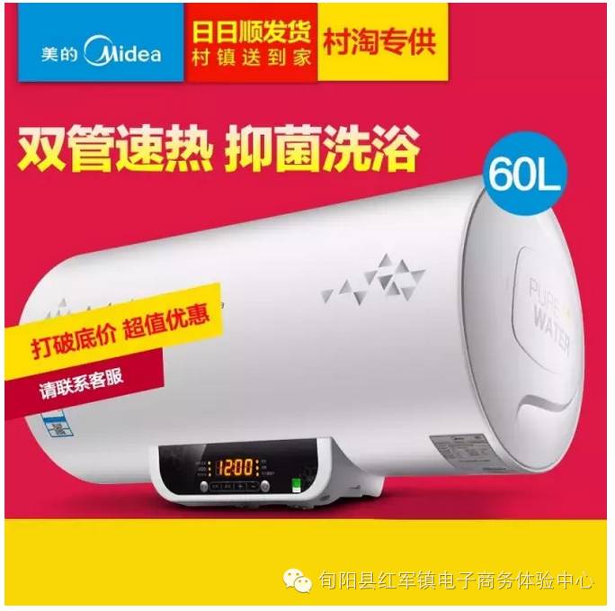 打开农村淘宝搜索:Midea/美的 F60-21WB2(ES)电热水器 洗澡淋浴储水式恒温60升速热 开业价999元