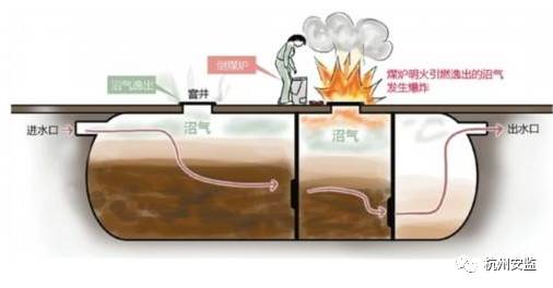 污水本身会产生沼气(主要成分为甲烷),一般在城市内的污水管道、化粪池内都或多或少存在沼气,若污水井盖或化粪池长期未打开,沼气无法排解,一旦达到爆炸浓度5%~16%,遇到明火就会发生爆燃。为此,提醒化粪池的维护单位,做好防范工作,定期清理;提醒大人小孩,不要在化粪池附近点明火。一定要远离或避开污水井、化粪池和下水道口,以免引爆沼气对居民人身安全造成伤害。