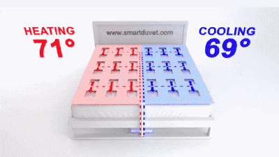 SMARTDUVET推出了一款名为BREEZE的智能部件,将其塞进被罩里可以分别将床上左右两个区域调节至不同温度,随时体验冰火两重天。