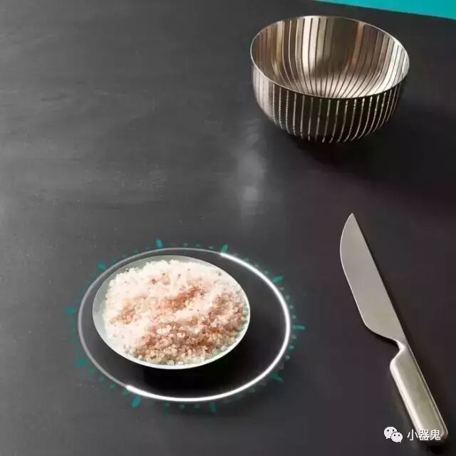 这款智能餐桌可以实现为食物加温、冷却等功能。桌面上有固定的循环加热位置,使用者将碗碟放在上方就可以保证42.5℃ 的最佳温度。至于冷却功能是针对酒类、甜点类,可以保证口感最为鲜美的 -5℃,而不管是加热还是冷却,即使将手放在相应位置,也不会使人受伤。