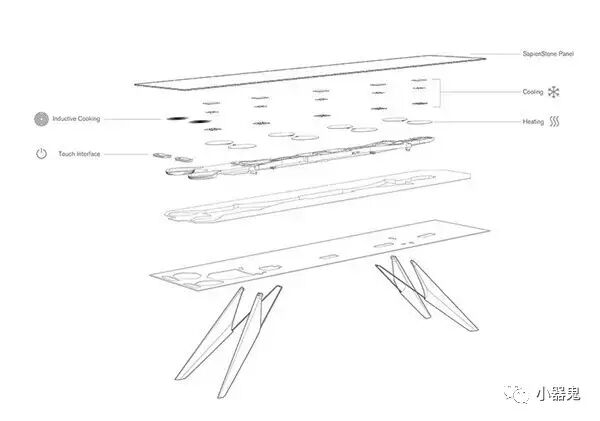 桌面采用陶瓷材质,陶瓷板的下部分有加热、冷却元件,再往下一层是电路板。