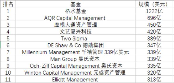 2016年对冲基金前十一名中,有四家都是以量化交易而出名的,包括大名鼎鼎的文艺复兴科技和量子基金Two Sigma。