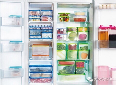 实测结果表明,B冰箱内的食物都用保鲜盒分开存放,但细菌还是一样多。