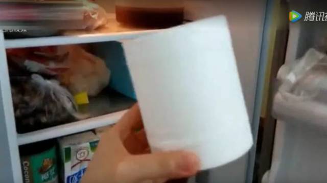 把一小卷纸巾放在冰箱里,很快就能把异味都吸干净~