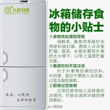 很多人容易患急性肠胃炎,多数是因为吃了自家冰箱里的不洁食物。冰箱,你真的会用吗?①不同食物放冰箱有不用“保质期”;②叶菜不要贴近冰箱内壁;③蛋奶最好别放在冰箱门处;④瓶装饮料不宜冷冻;⑤别总把太热的食物直接放入冰箱…