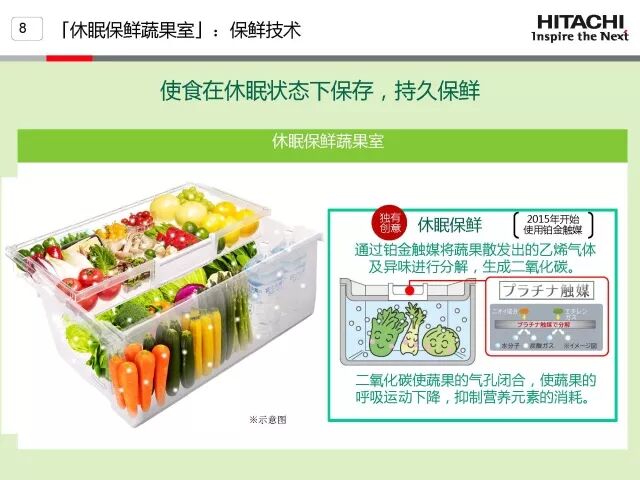接下来是日立黑科技,休眠保鲜蔬果室