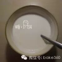 1. 牛奶加吉利丁粉拌匀浸泡5分钟,搅匀,微波炉叮30秒,取出搅拌至吉利丁粉完全融化(吉利丁粉的用量最好参照自己的产品说明,我的产品说明写着12G可以凝固大约570ML液体量,我是估算了自己最后布丁液的体积来决定自己要用7G吉利丁粉的)