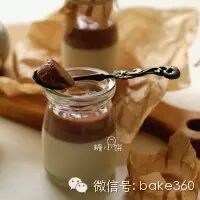 4. 过筛之后的原味酸奶布丁糊取75G留着做巧克力层(如果不做搭配的话可以省略这步直接全部装入布丁瓶中就完成了),剩余的装入布丁瓶中,不要倒满,要给第二层留些位置。送入冰箱冷藏10-15分钟初步固定一下避免混色