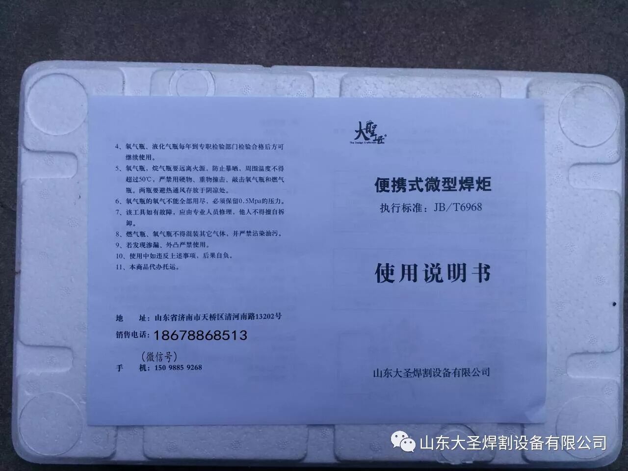 做制冷.家电.机电.配件修理朋友的 特好消息:山东大圣焊割设备有限公司主要生产批发2升手提焊炬,4升小车焊炬 氧气瓶 乙炔瓶 丙烷瓶 氧气减压阀 焊枪 割枪 氧气管 乙炔管等质量过硬.有需要询价的朋友请加微信;18678868513 联系.还有优惠.朋友.做焊炬要做就做高档产品.售出去省心.修理师傅用着放心.低档焊炬看着是省钱.质量差天天找麻烦.闹心.感谢各位群友的大力支持.祝大家生意兴隆.事业兴旺微信扫一扫下方二维码关注!