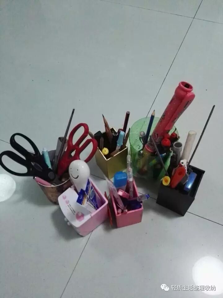 收拾笔筒,昨天已经扔了一些了,用袋子装好放在垃圾桶旁边,今天看被拿走了,今天继续放/偷笑