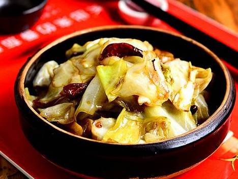 4、下包菜翻炒至稍微变软,调入适量的盐翻炒均匀。