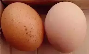 发霉蛋:有的鸡蛋遭到雨淋或受潮,会把蛋壳表面的保护膜洗掉,使细菌侵入蛋内而发霉变质,致使蛋壳上有黑斑点并发霉,这种蛋也不宜购买食用。
