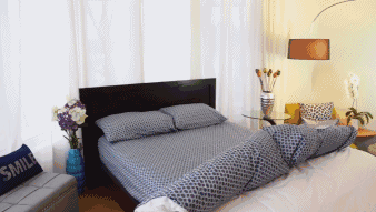 这款被罩还能自动折叠。每天起床后,只要按一下开关,被子就会自动平摊,不用一分钟就整整齐齐了。