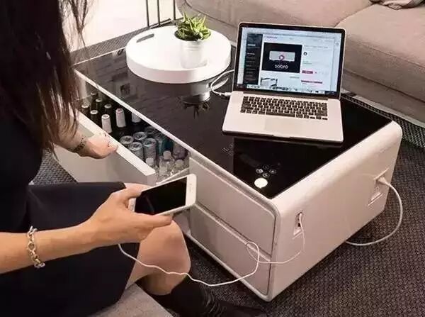 这款自带冰箱的茶几,可以放上家里所有的冷饮。手机没电也不用怕,茶几有USB和插头。多功能茶几,简直是宝宝们的福音呀。