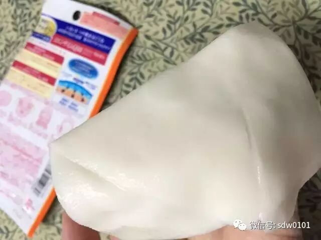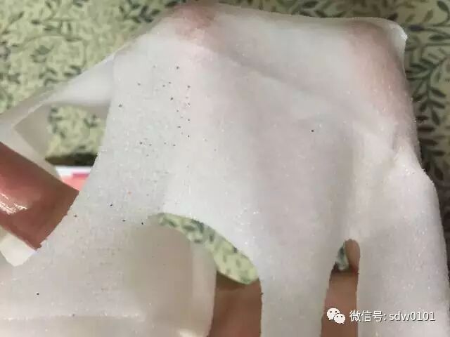 面膜纸质地比较厚,但是不用担心透气和不服帖问题。面膜纸上有很多透气孔。
