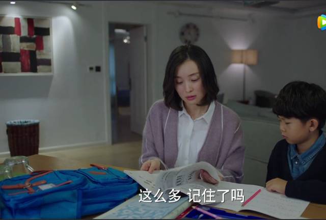 仔细一看,电视柜是定制的,留出了大量储物空间,满足了三口之间物品较多的需求,也很符合子君喜欢「买买买」的个性。电视的上面还打了搁板放置摆设和相框。