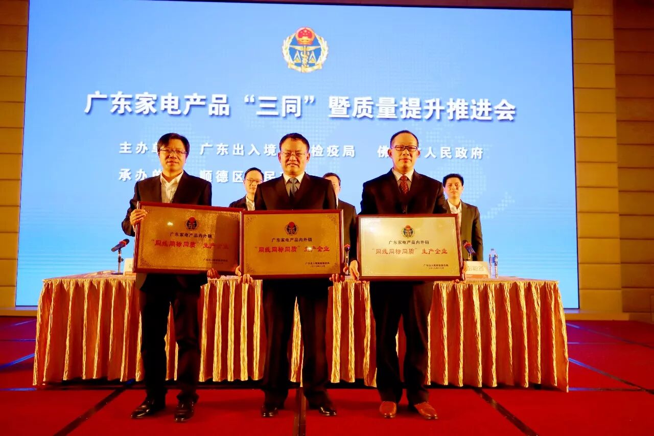 12月6日,由广东省检验检疫局组织的“三同”企业和产品颁奖大会在顺德进行。海信容声(广东)冰箱有限公司成为首批中国家电“三同”企业,也成为首批也是唯一一家获此殊荣的冰箱企业。